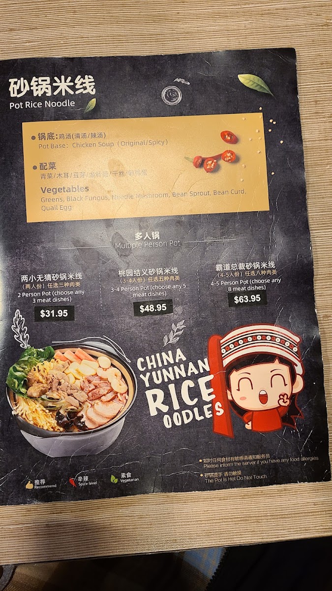 Xiang Yuan Qiao Yunnan Cross Bridge Rice Noodle Menu